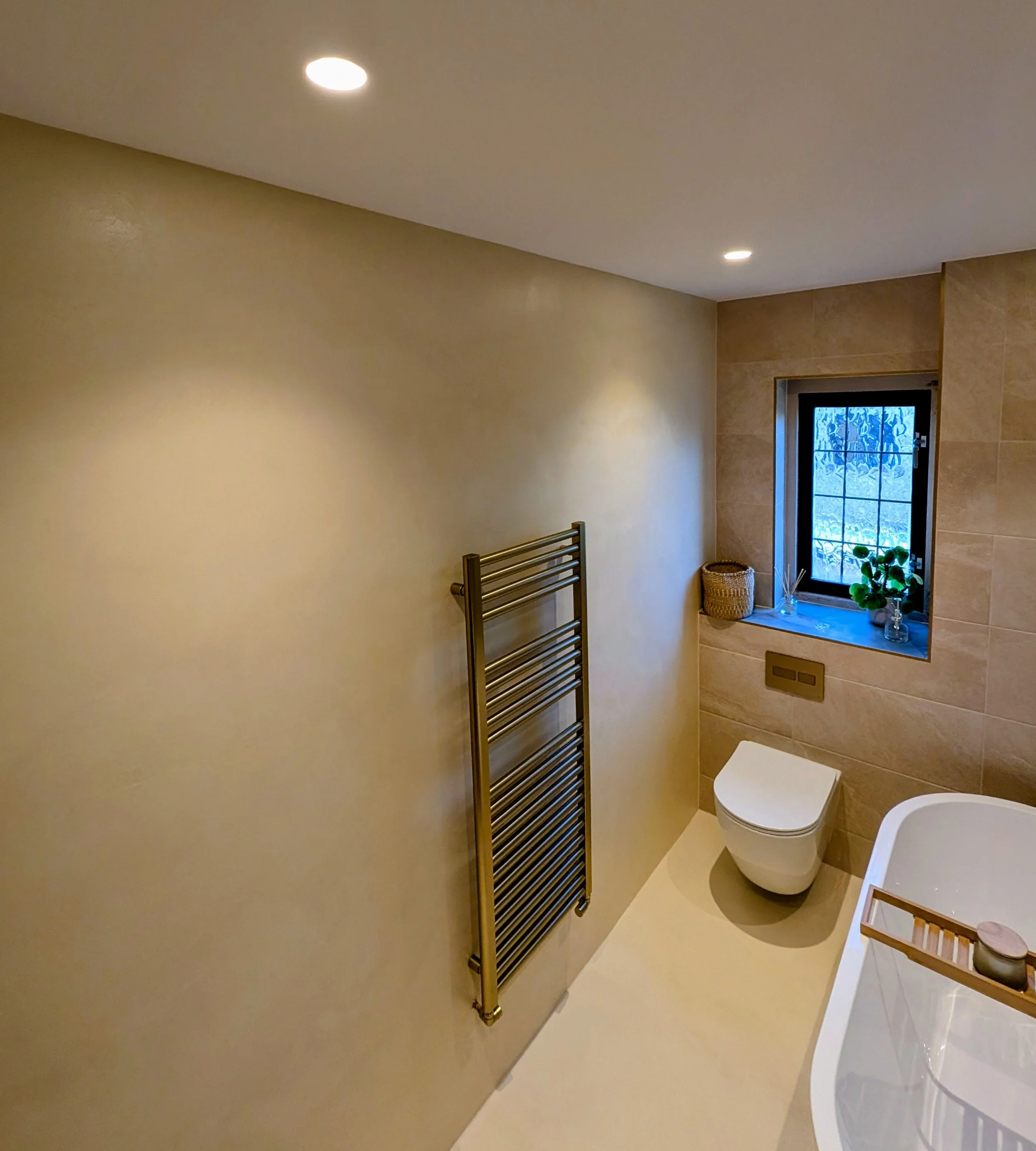 Microcement in bathrooms offers a seamless and contemporary surface solution that’s both practical and visually striking. Fully waterproof when sealed, it's ideal for wet areas like showers, walls, floors, and even built-in furniture. Its low maintenance and mould-resistant properties make it a popular alternative to traditional tiling—perfect for creating clean, spa-like interiors with a luxurious finish.